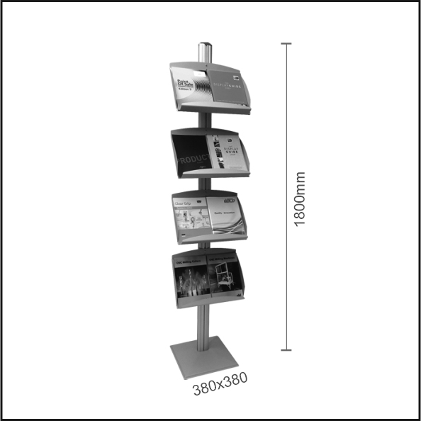 Ovaj model je jednostrani te je moguće izložiti 4 kom brošura (prospekta, letka)  formata A3 vodoravno ili 8 kom brošura (prospekta, letka) formata A4 okomito.