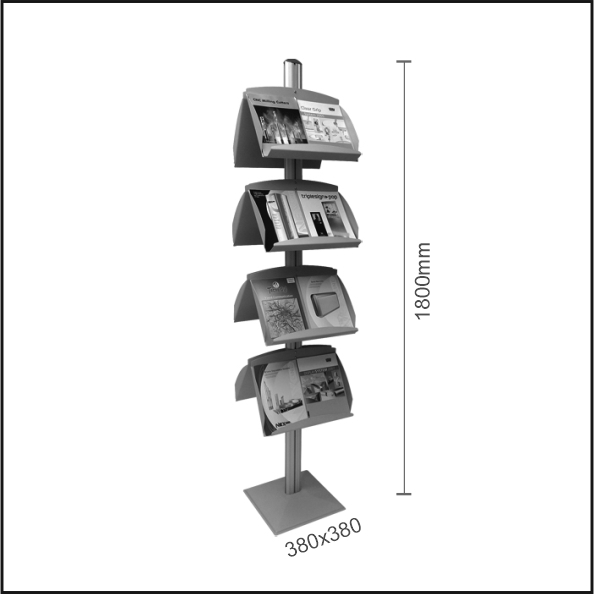 Ovaj model je obostrani te je moguće izložiti 8 kom brošura (prospekta, letka)  formata A3 vodoravno ili 16 kom brošura (prospekta, letka) formata A4 okomito.