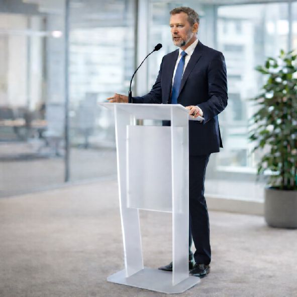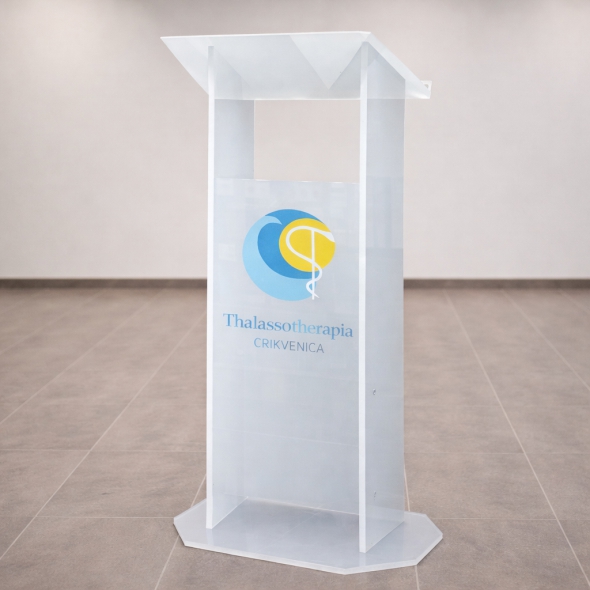 Pleksi govornica izrađena od mutnog pleksiglasa boje leda visoke stabilnosti.