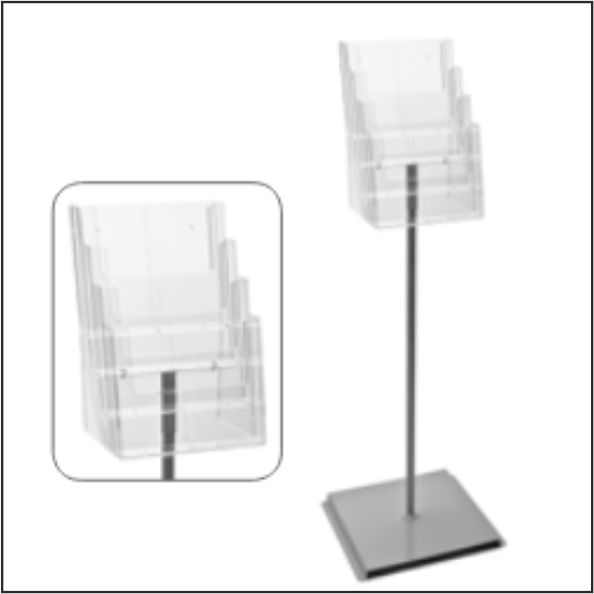 Stalak za prospekte Floor je samostojeći podni stalak dizajniran da na jednostavan i praktičan način prezentirate vaše promotivne materijale u formatu A4.