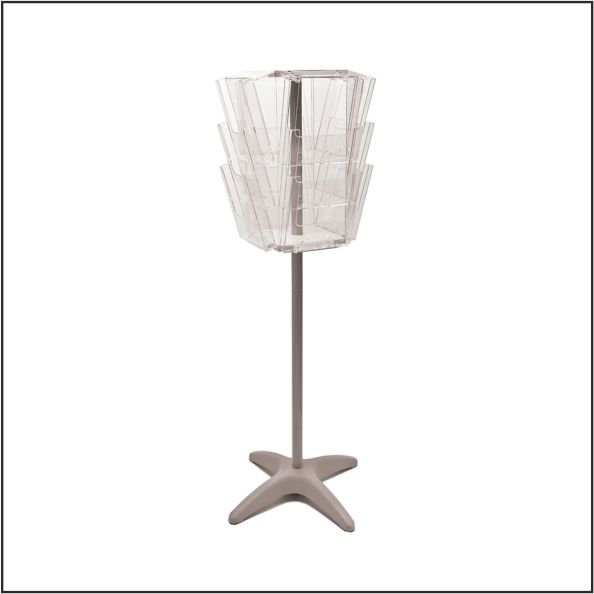 Zahvaljujući rotirajućem dizajnu i većem broju džepova, omogućuje maksimalnu iskorištenost prostora uz odličnu vidljivost svih letaka i brošura. Transparentna izvedba dodatno naglašava sadržaj i osigurava moderan, uredan izgled u svakom interijeru.