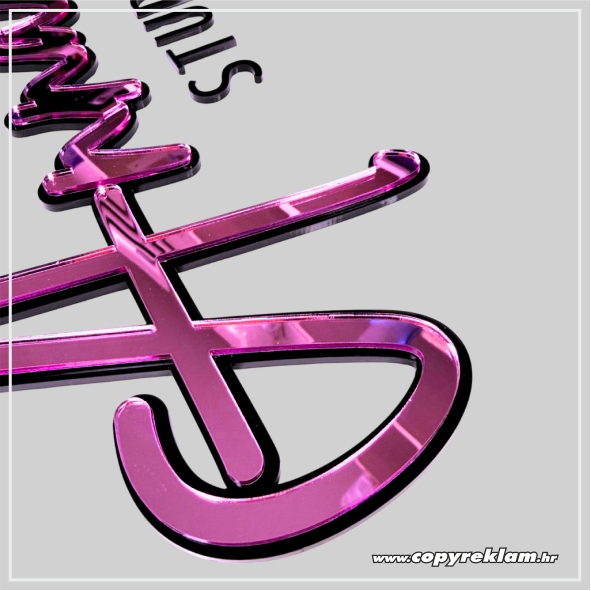 Nudimo nekoliko vrsta/boja pleksiglasa za pozadinski krug (bijela, crna, prozirna,..) i nudimo velik broj vrsta i boja pleksiglasa za slova uz egzotične boje ogledalo pleksiglasa.
